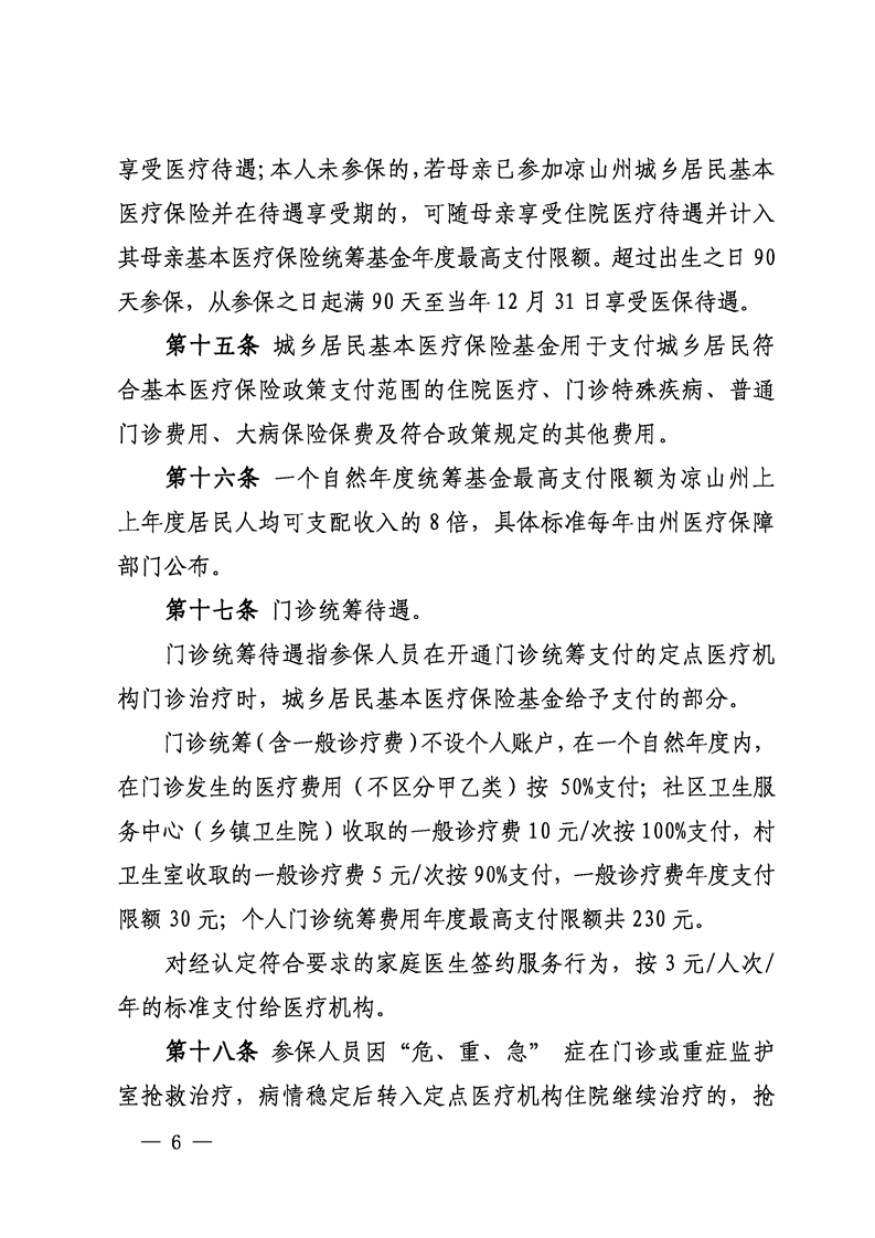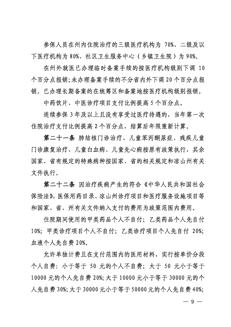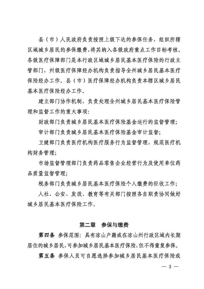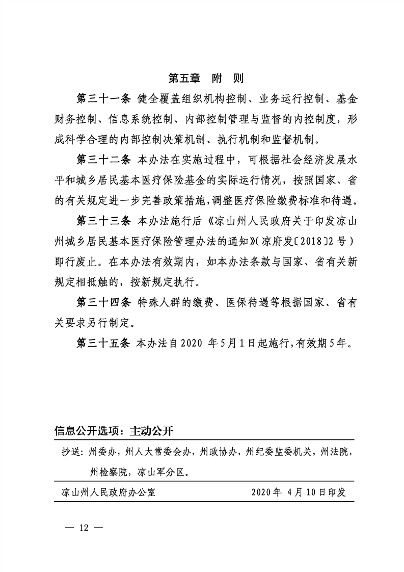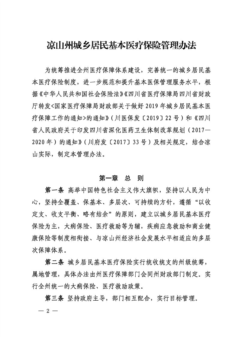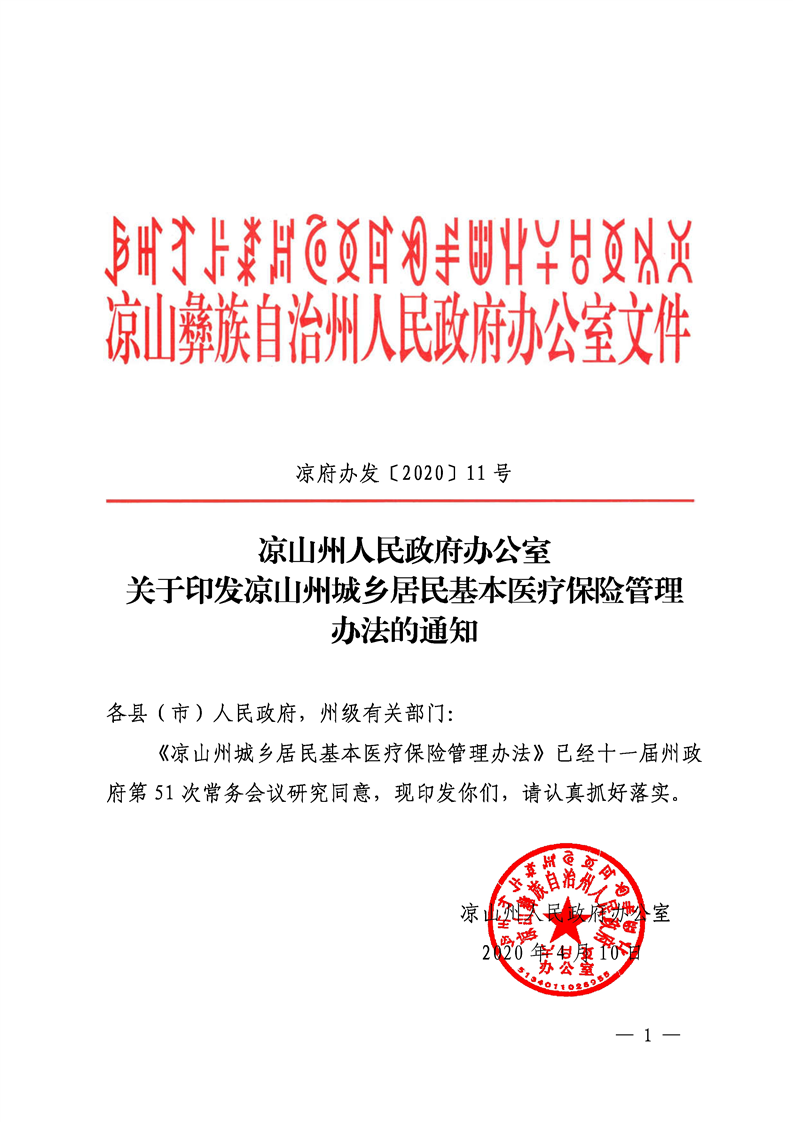关于印发凉山州城乡居民基本医疗保险管理办法的通知