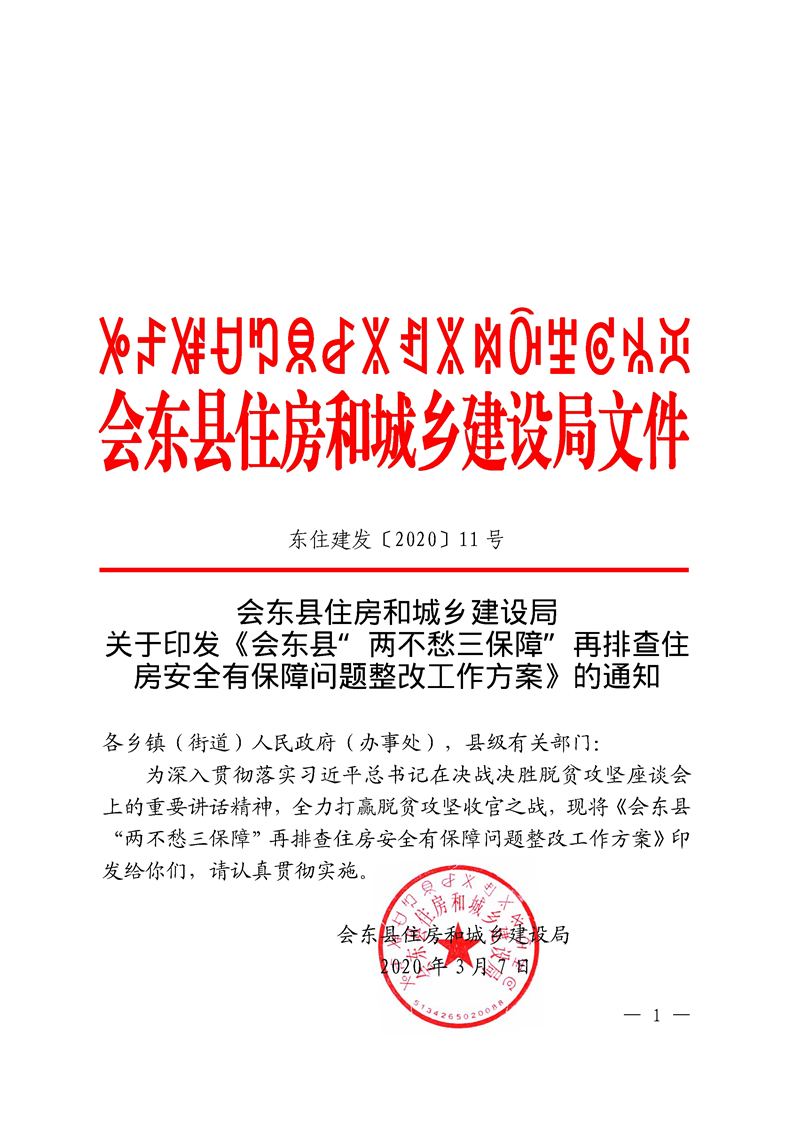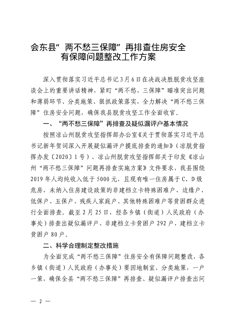 关于印发《会东县“两不愁三保障”再排查住房安全有保障问题整改工作方案》的通知