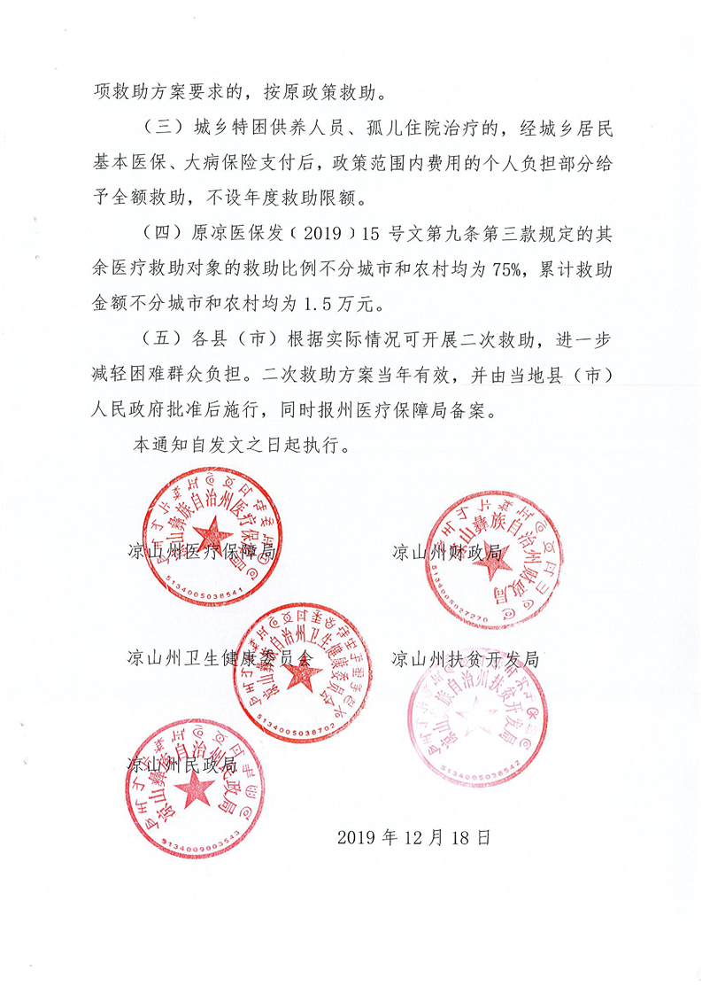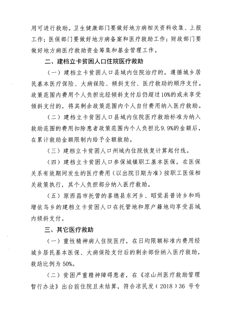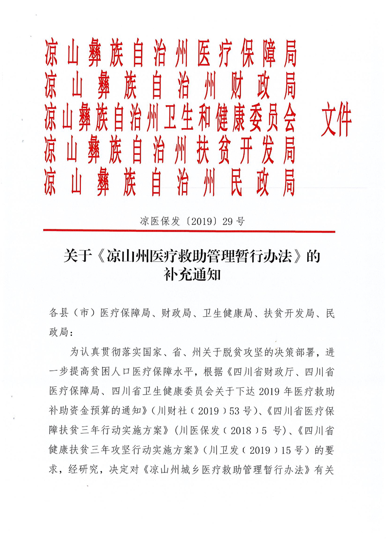 关于《凉山州医疗救助管理暂行办法》的补充通知