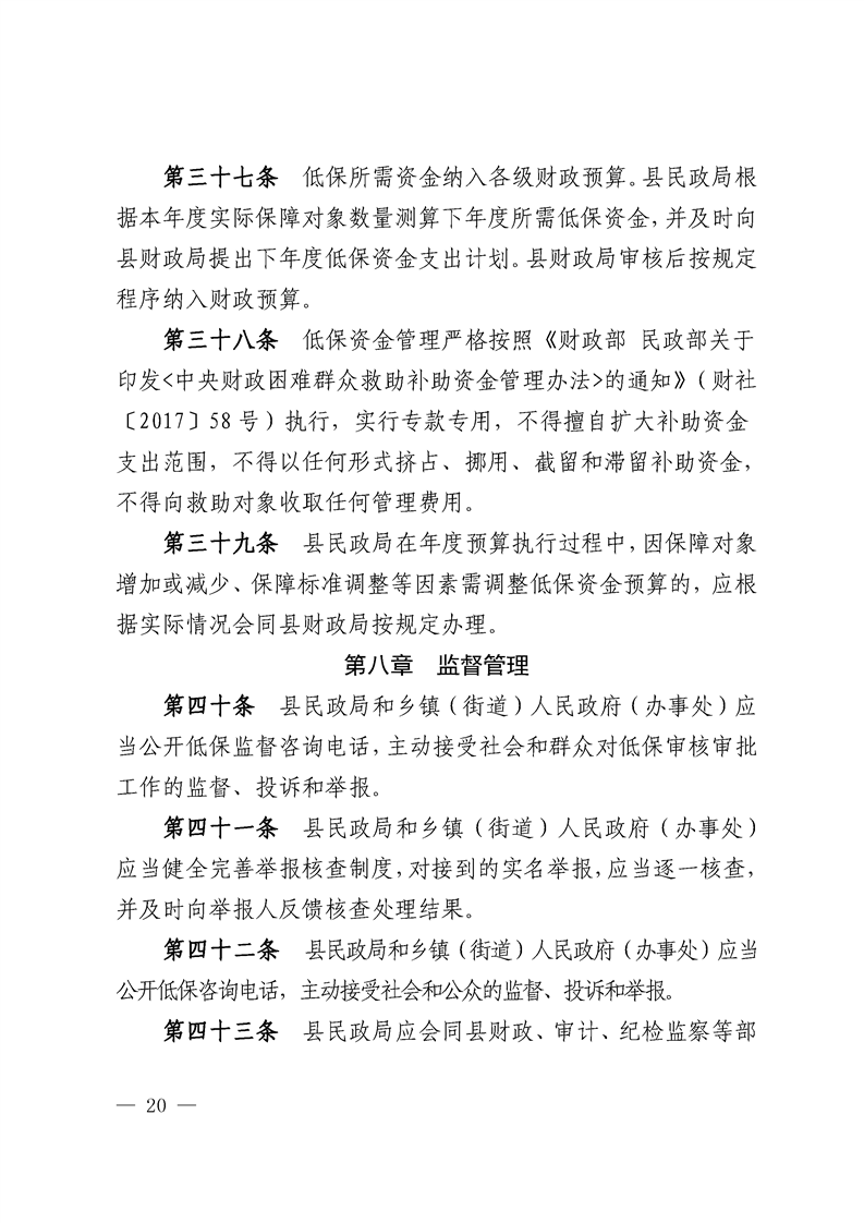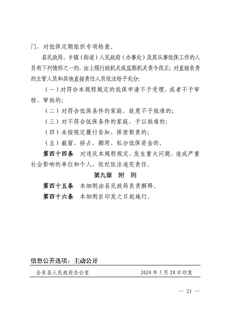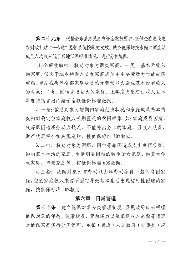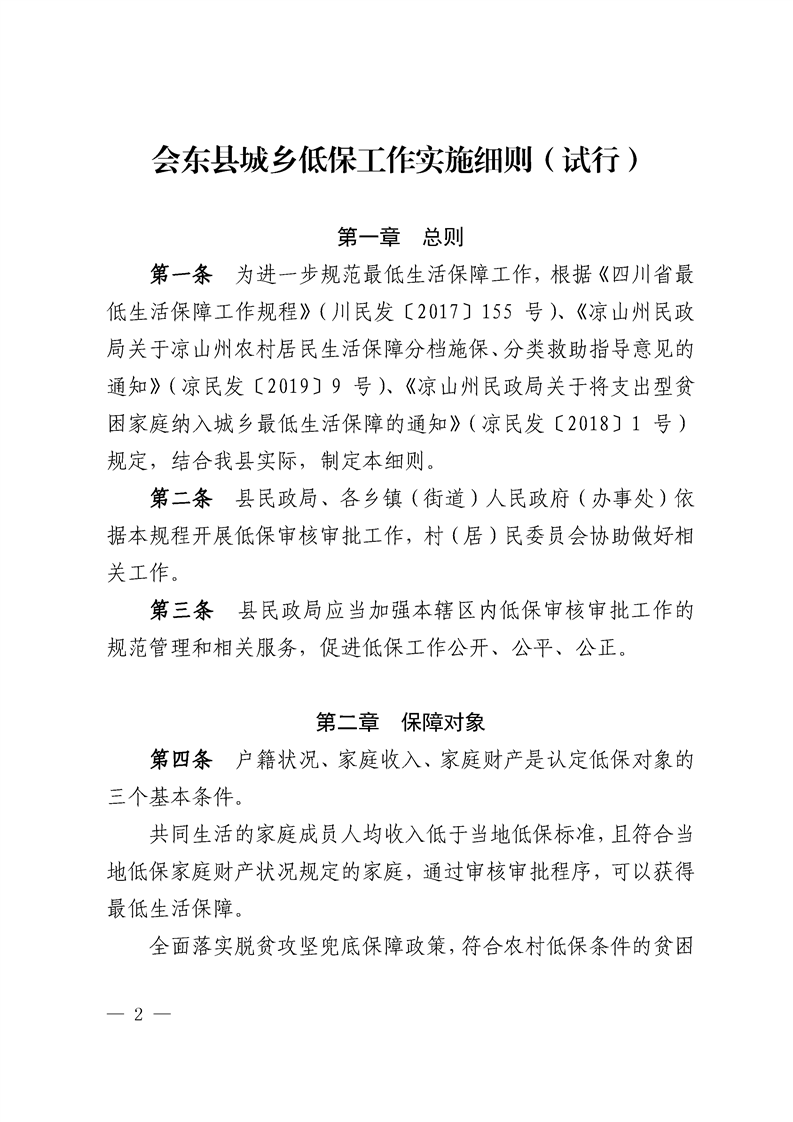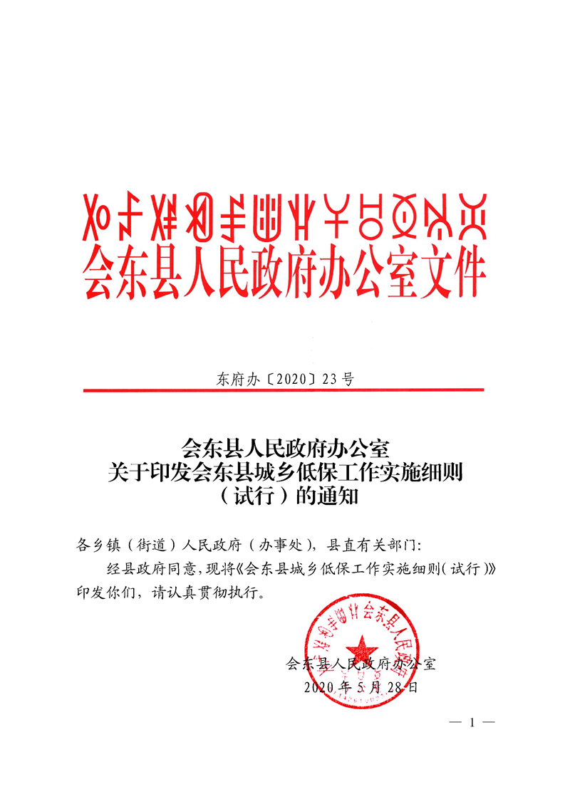 关于印发会东县城乡低保实施细则(试行)通知