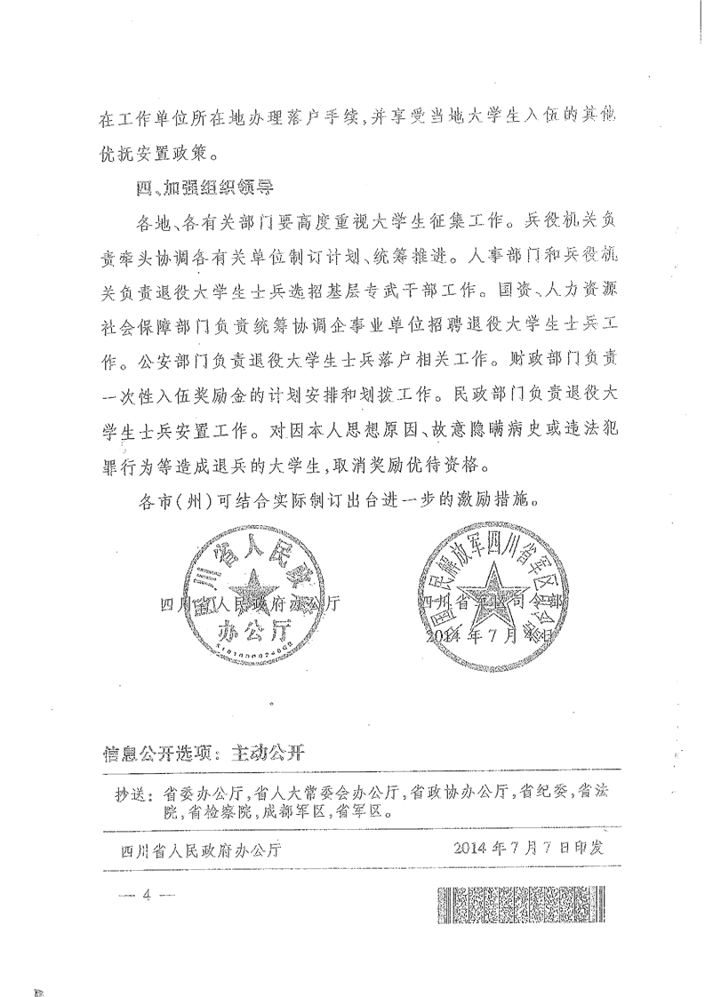 四川省人民政府办公厅 四川省军区司令部关于进一步加强大学生征集工作的通知