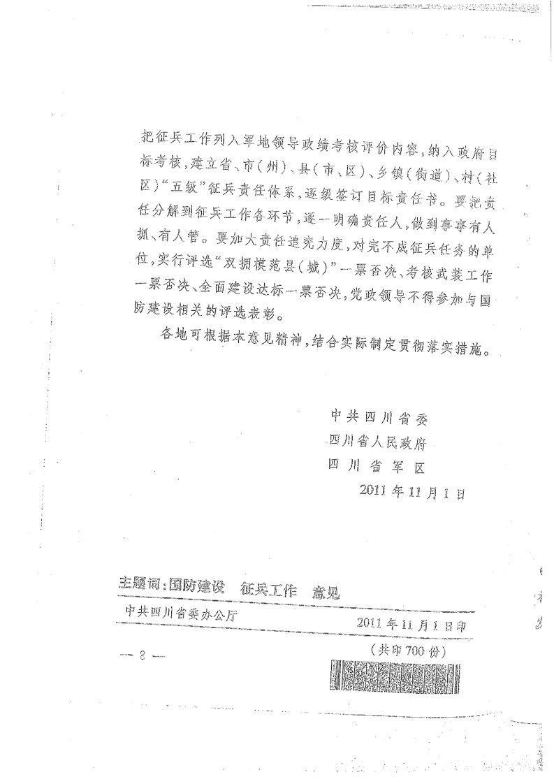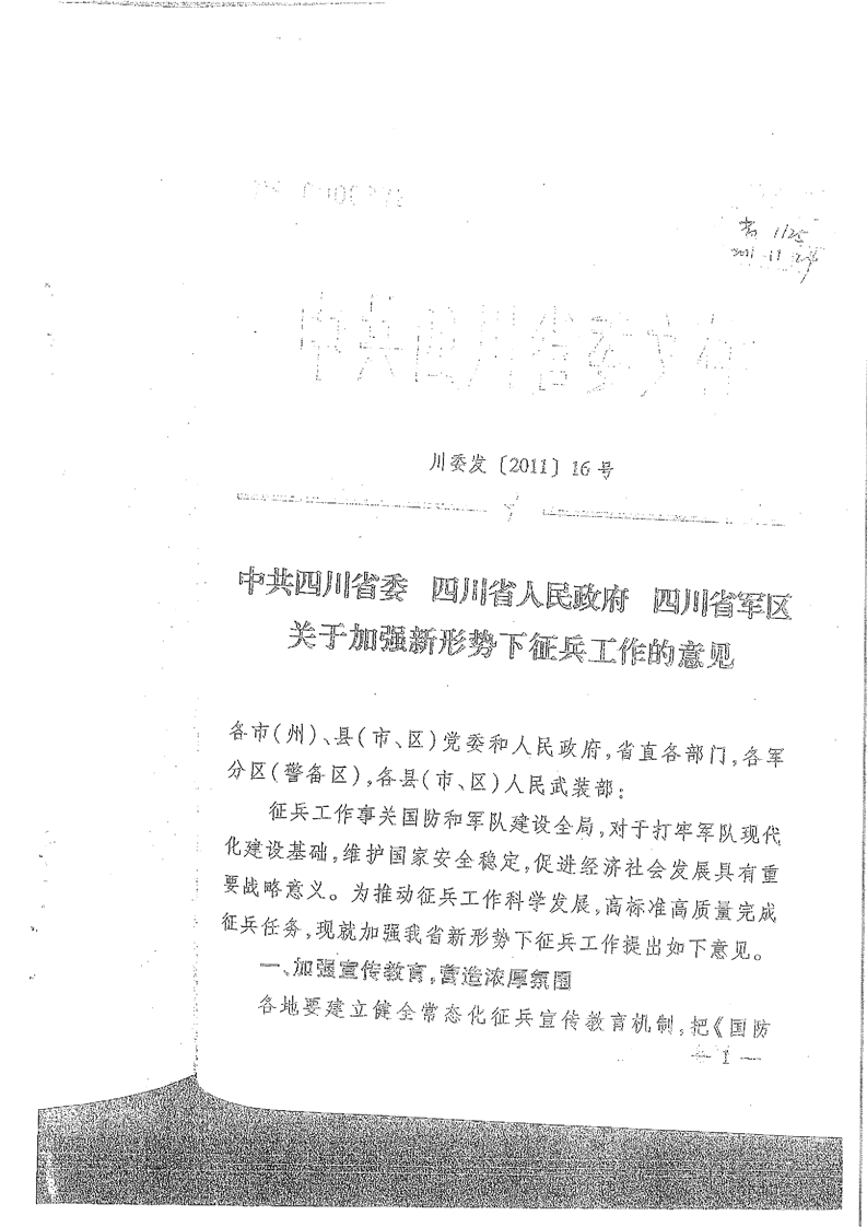 中共四川省委 四川省人民政府 四川省军区关于加强新形势下征兵工作的意见