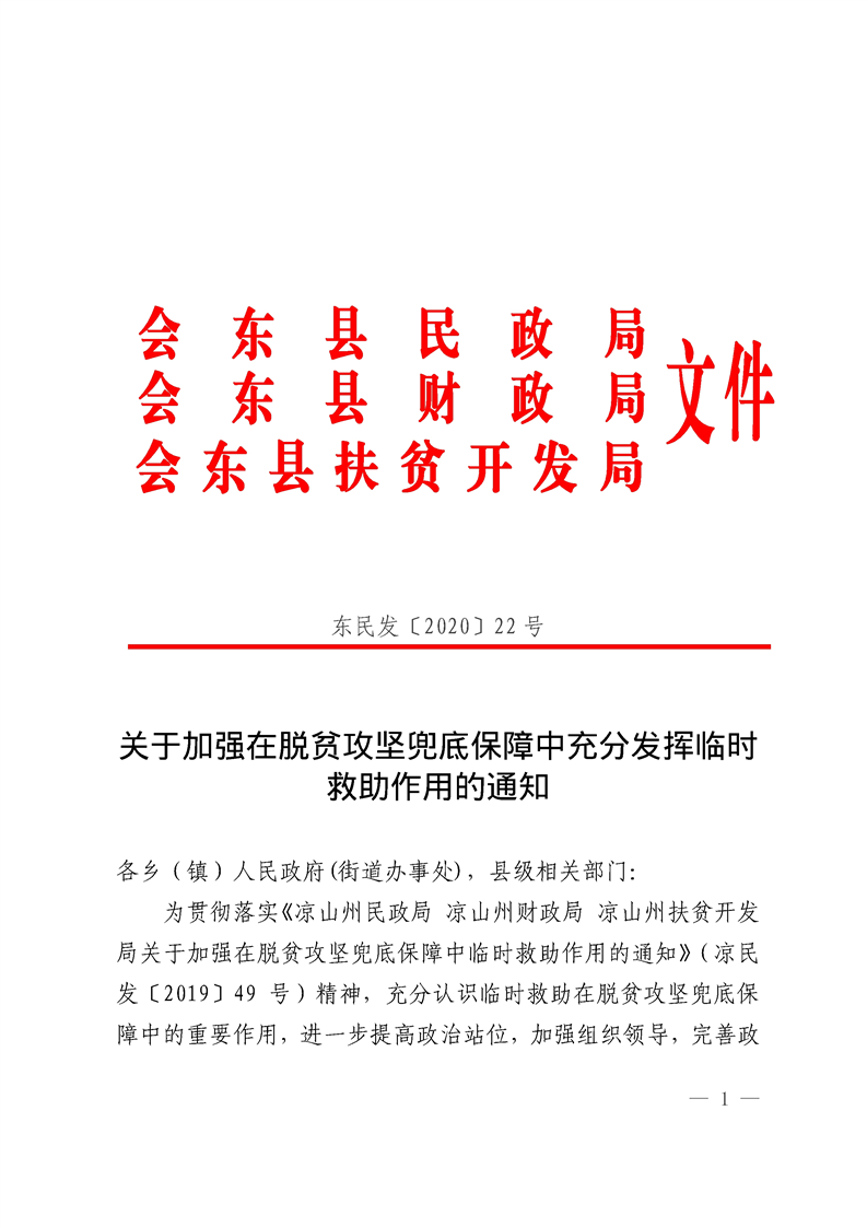 关于加强在脱贫攻坚兜底保障中充分发挥临时救助作用的通知