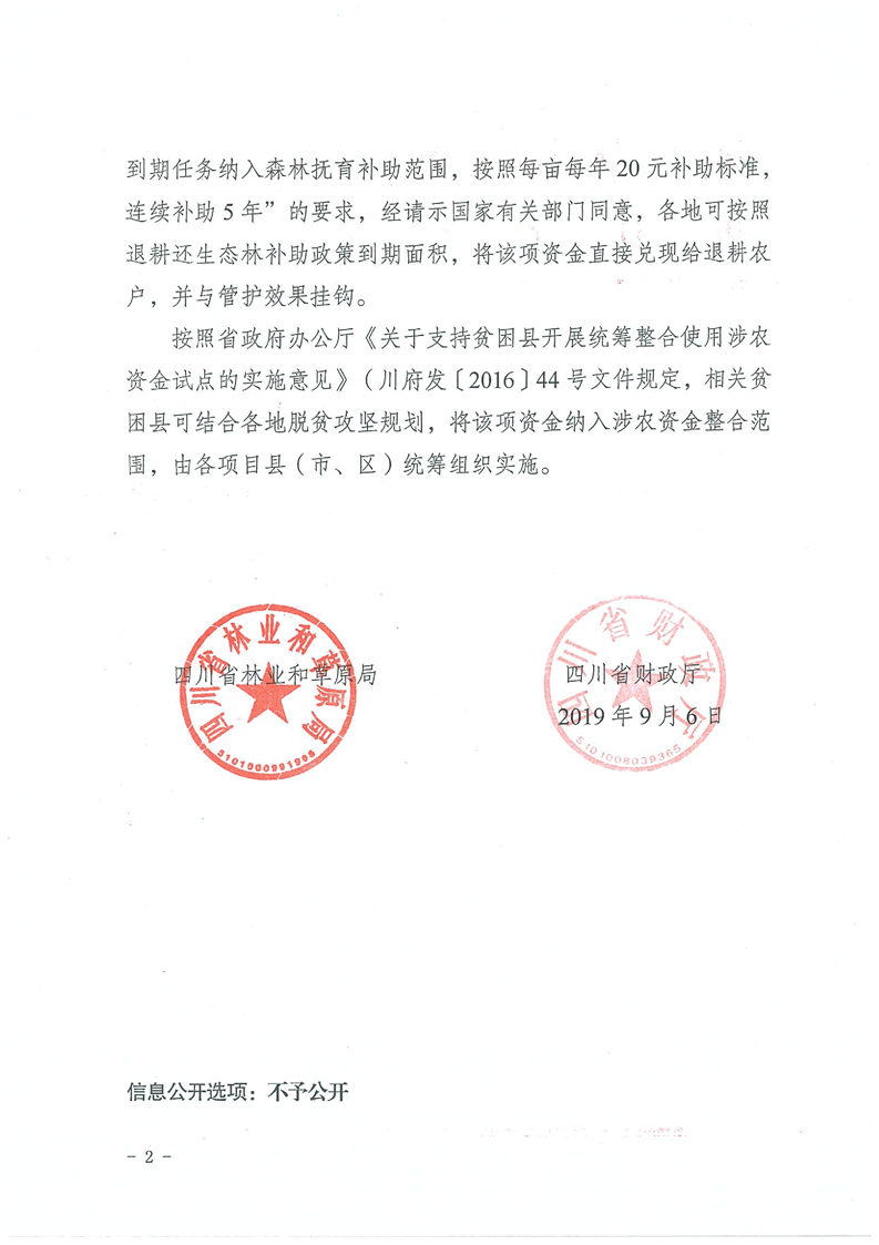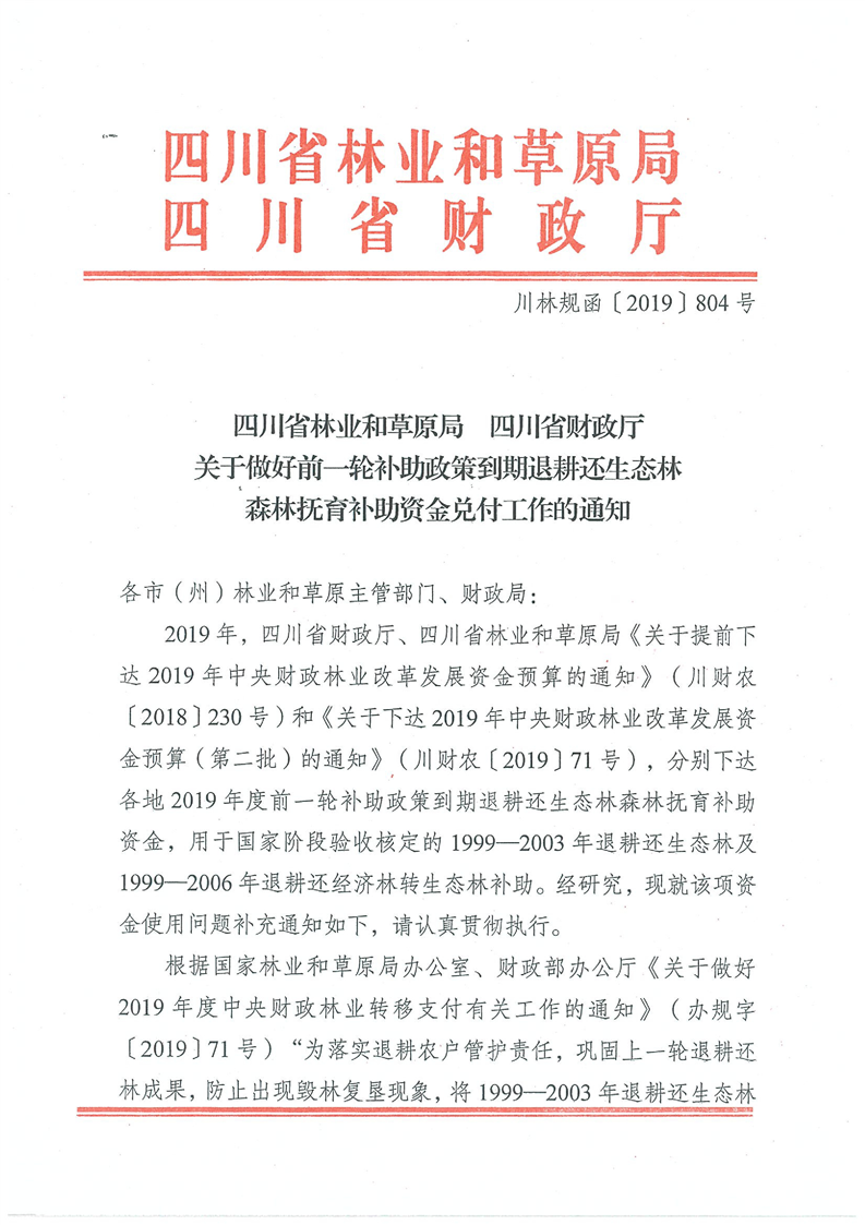 四川省林草局 四川省财政厅关于退耕还生态林森林抚育补助资金兑付工作的通知