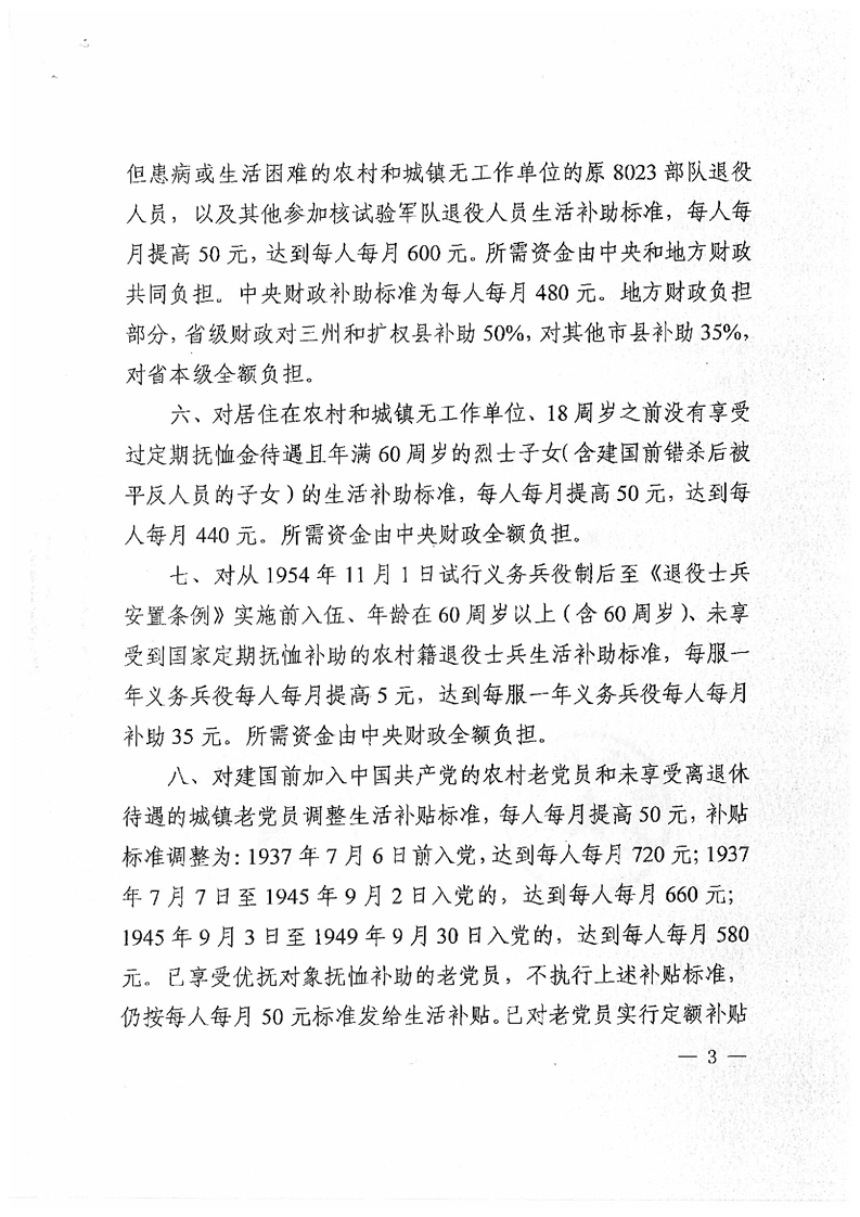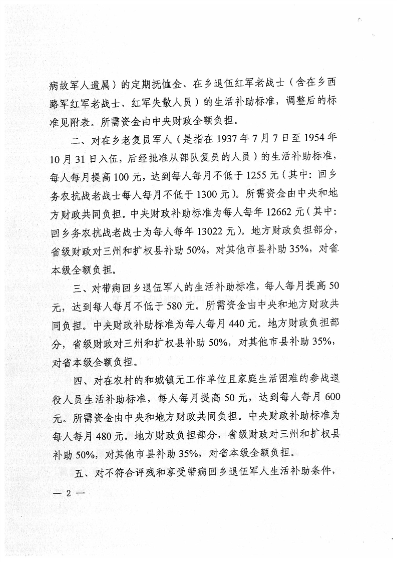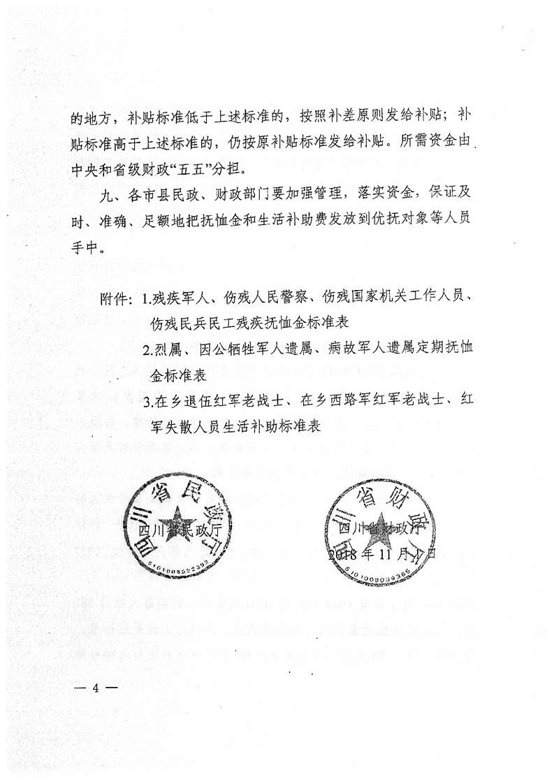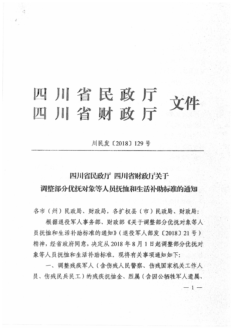 四川省民政厅四川省财政厅关于调整部分优抚对象等人员抚恤和生活补助标准的通知