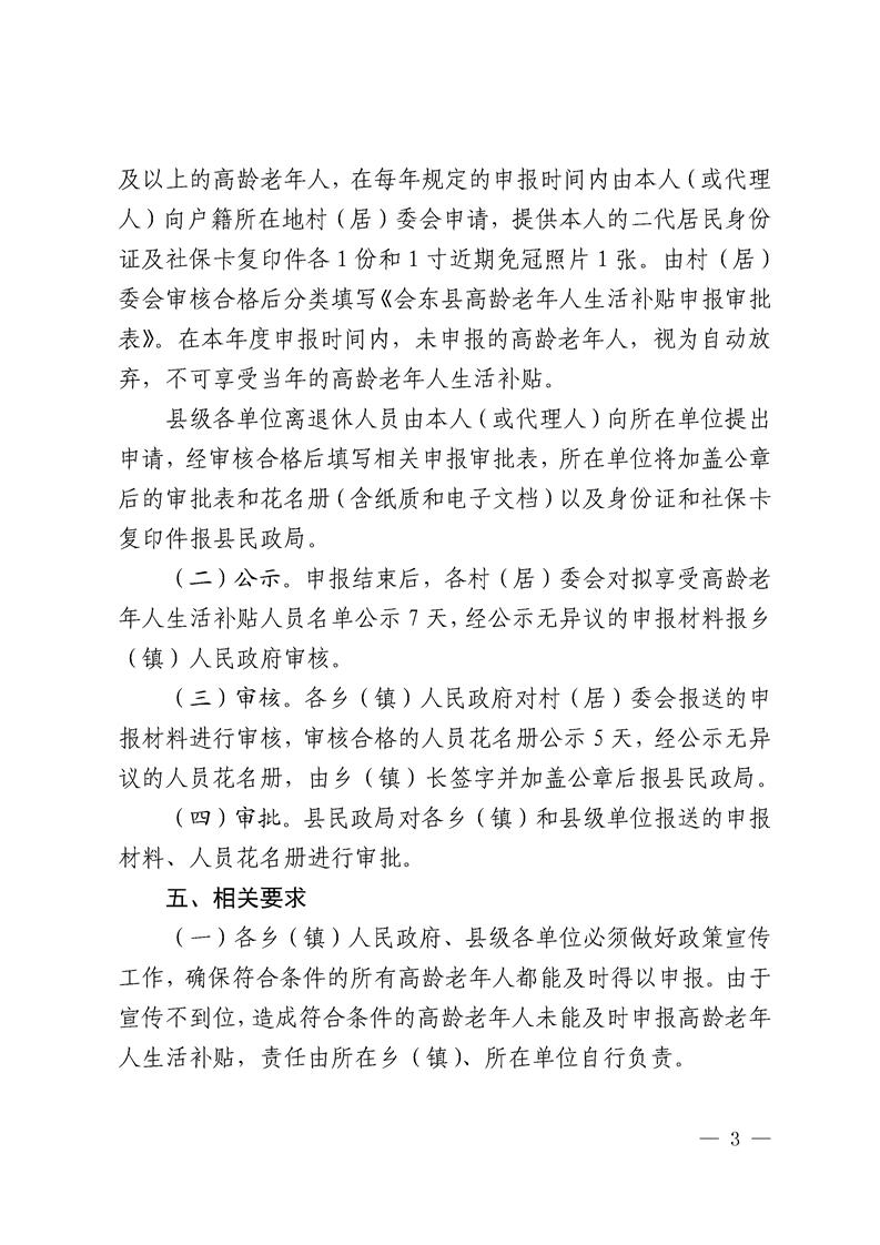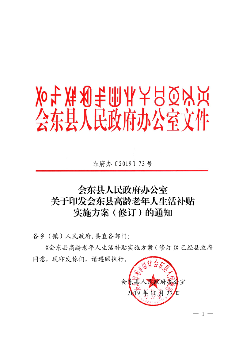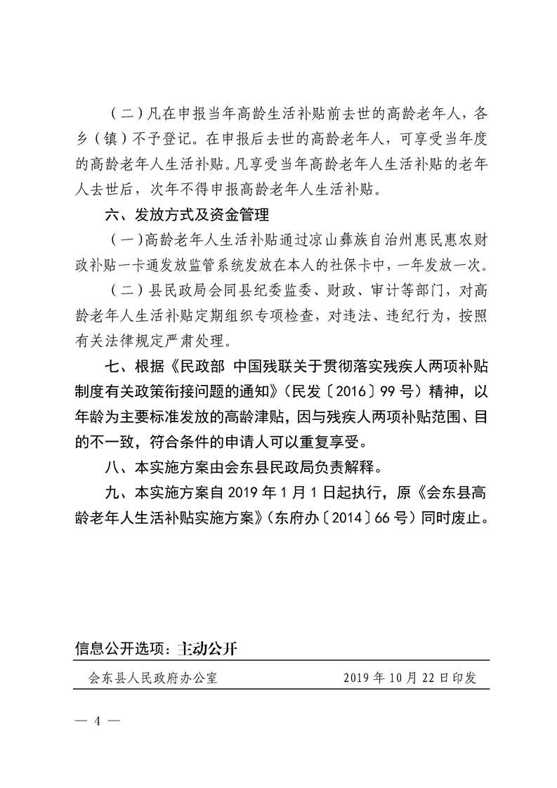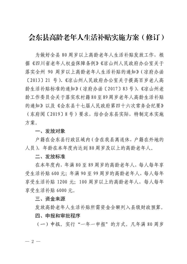 会东县人民政府办公室关于印发会东县高龄老年人生活补贴实施方案(修订)的通知