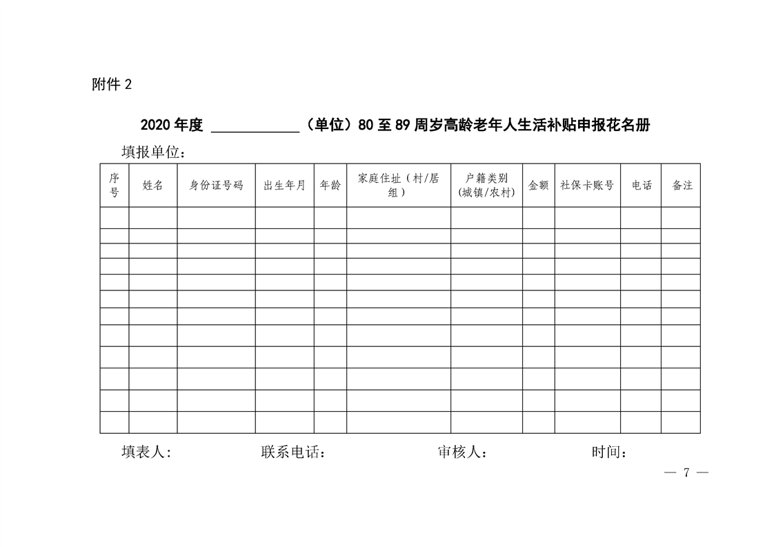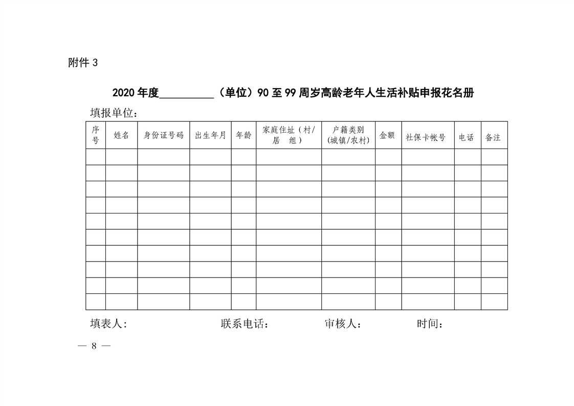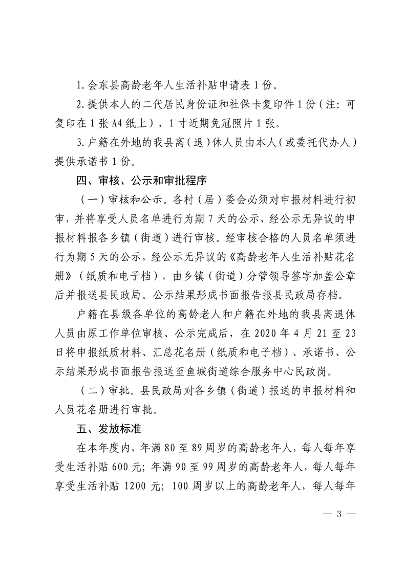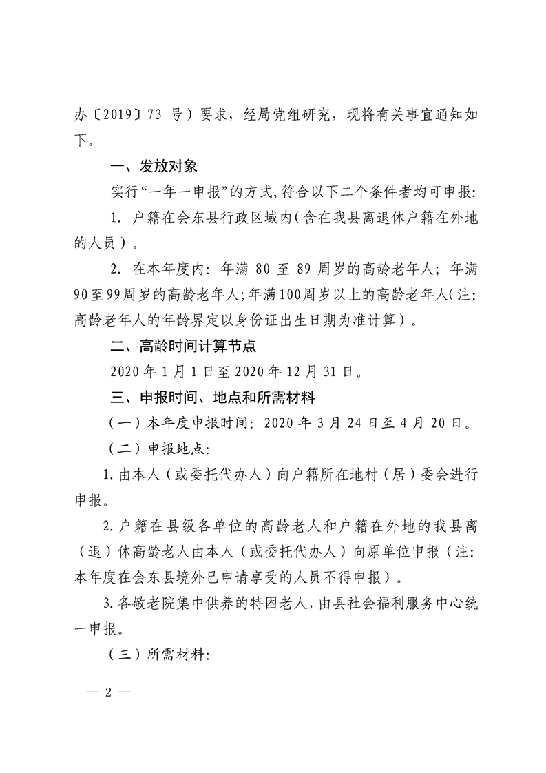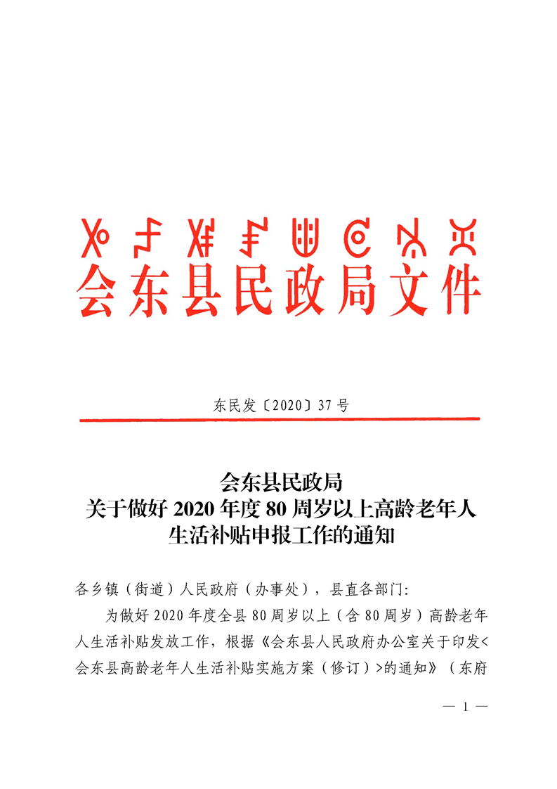 会东县民政局关于做好2020年度80周岁以上高龄老年人生活补贴申报工作的通知