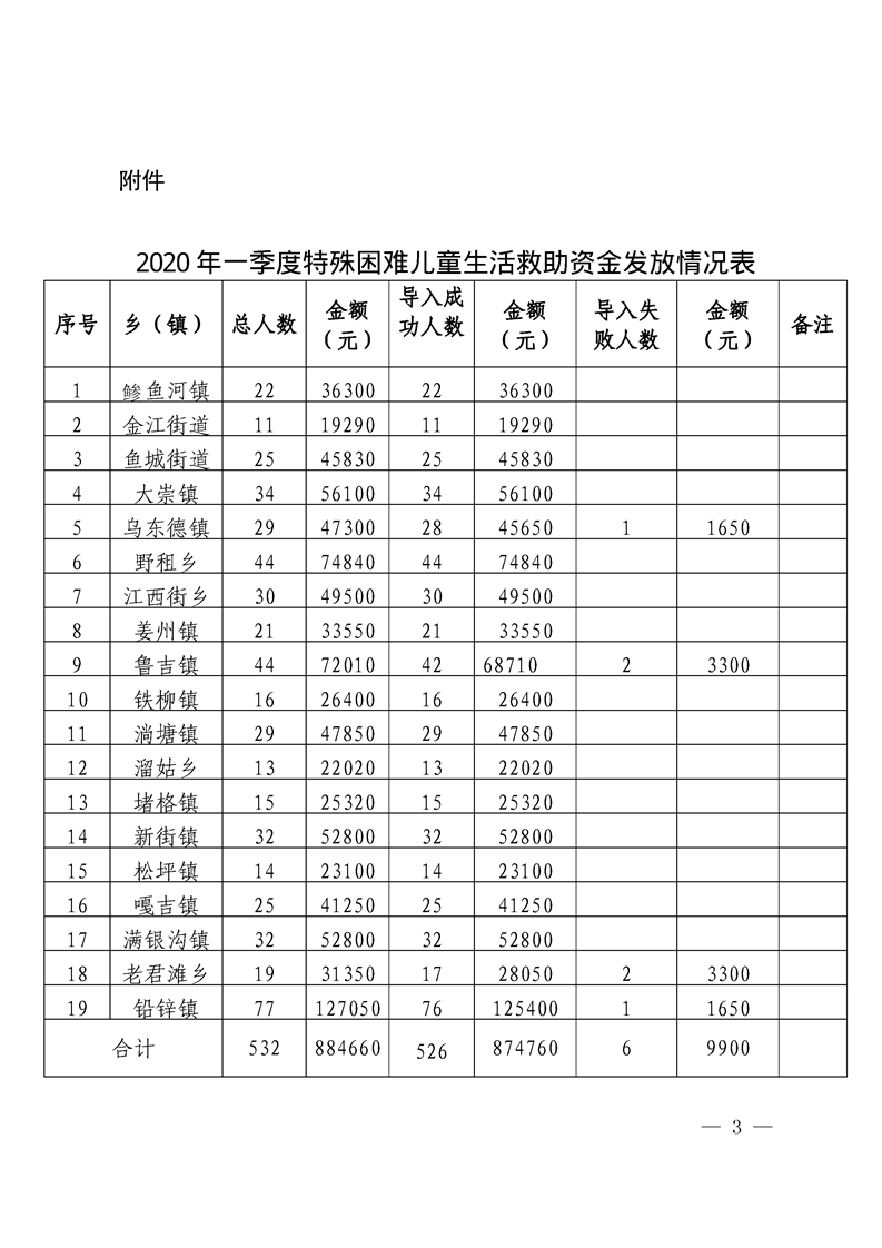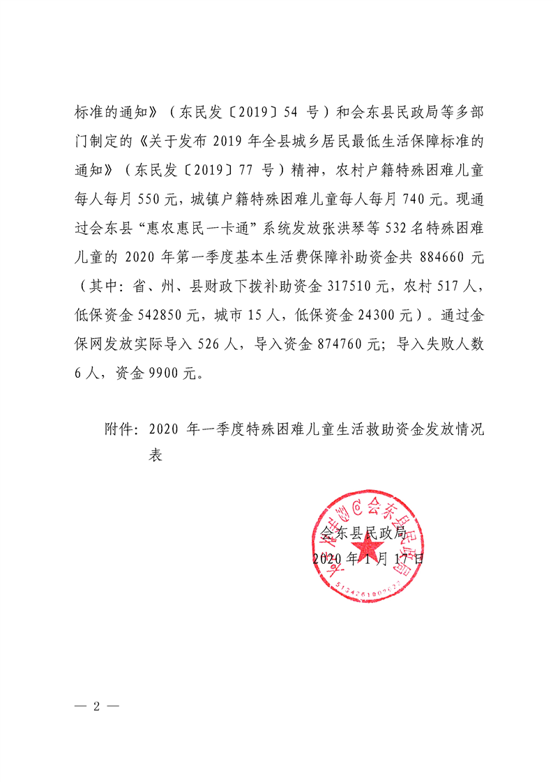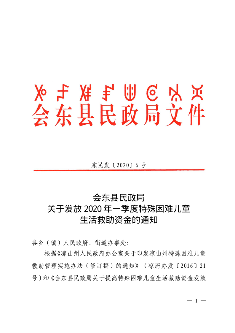 关于发放2020年一季度特殊困难儿童生活救助资金的通知