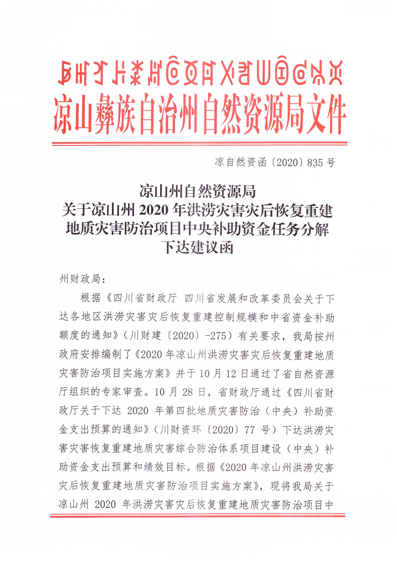 | 政策文号: | 凉自然资函〔2020〕835号 |