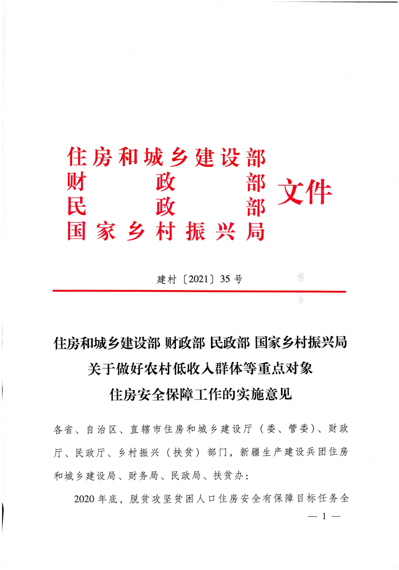 《关于做好农村低收入群体等重点对象住房安全保障工作的实施意见》(建村〔2021〕35号)