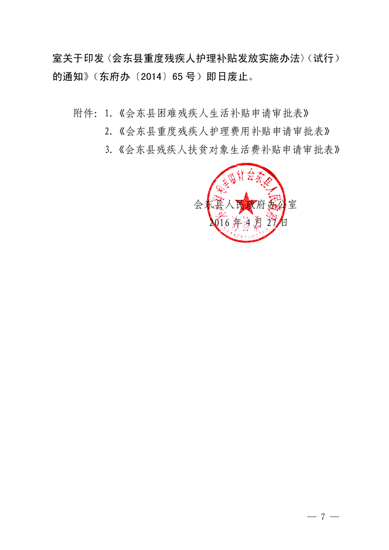 会东县人民政府办公室关于做好各类残疾人生活补贴及护理费用发放工作的通知